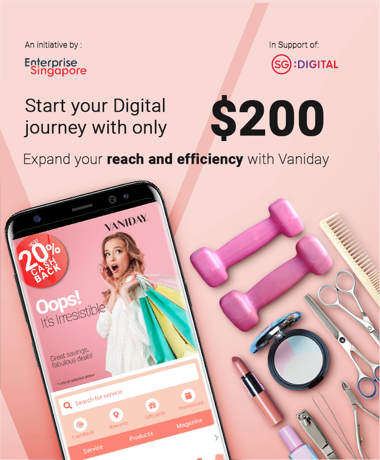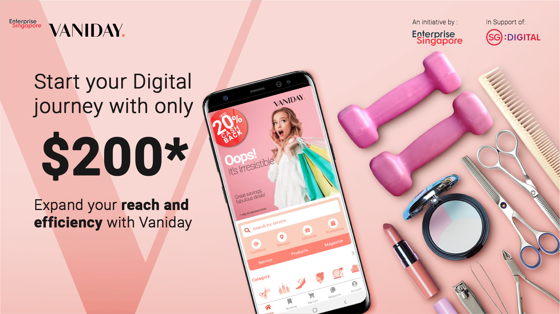 - 一年的 myVaniday订阅配套,可让商 家管理预约、库 存,现金回扣以及员 工日程表